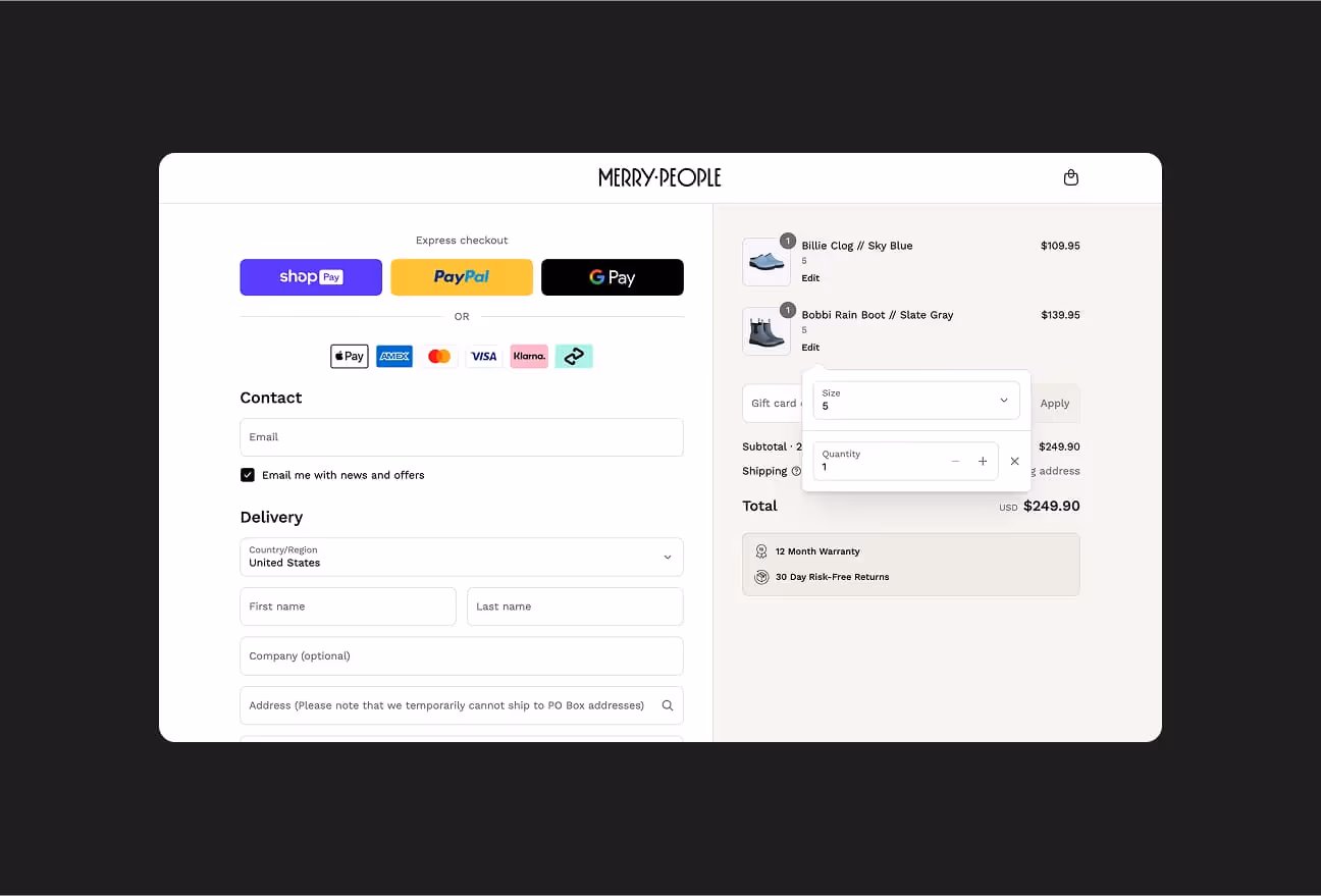 Conversion is always the goal, but the experience has to feel natural and enjoyable. We’ve designed features like a “Notify Me” widget for sold-out products and a country selector to support international shoppers. Each update is made with Merry People’s uplifting, community-driven brand in mind, creating an experience that’s positive, and never pushy.