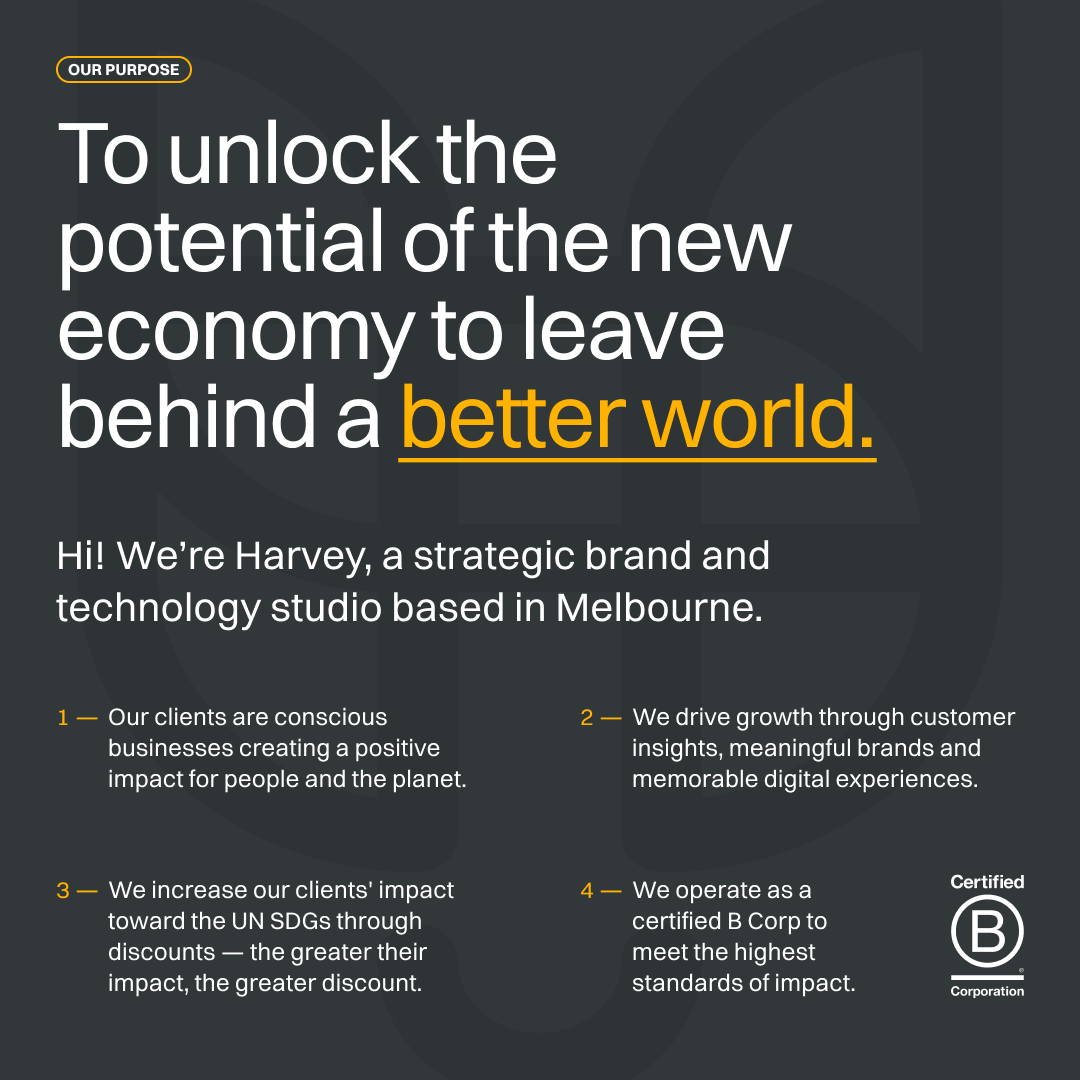 Our priorities remain the same: client satisfaction, meaningful impact, team wellness, quality work, and financial sustainability. Above all, we’ll stay grounded in our purpose and values as we evolve Harvey into a more empowered, transparent, and high-performing strategic brand and tech studio.