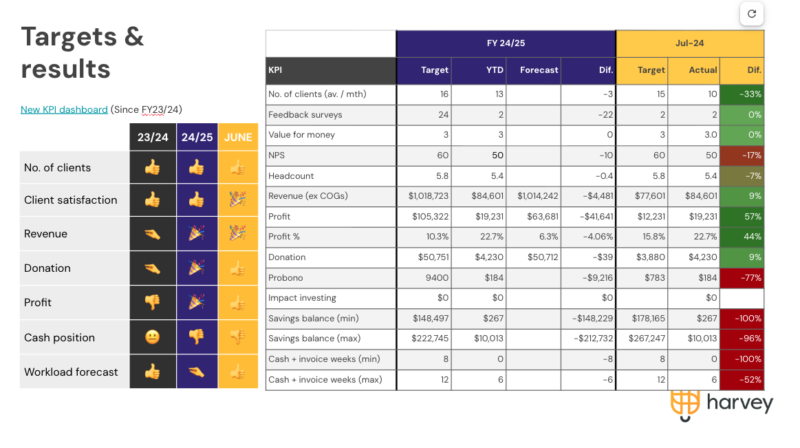 Monthly reporting on targets & progress